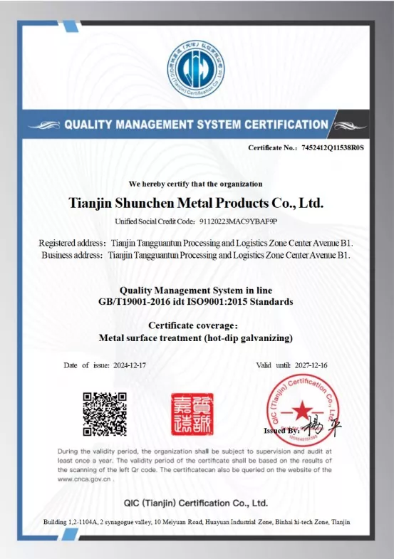 Shunchen's senior management has over 20 years of experience and technology in hot-dip galvanizing production.