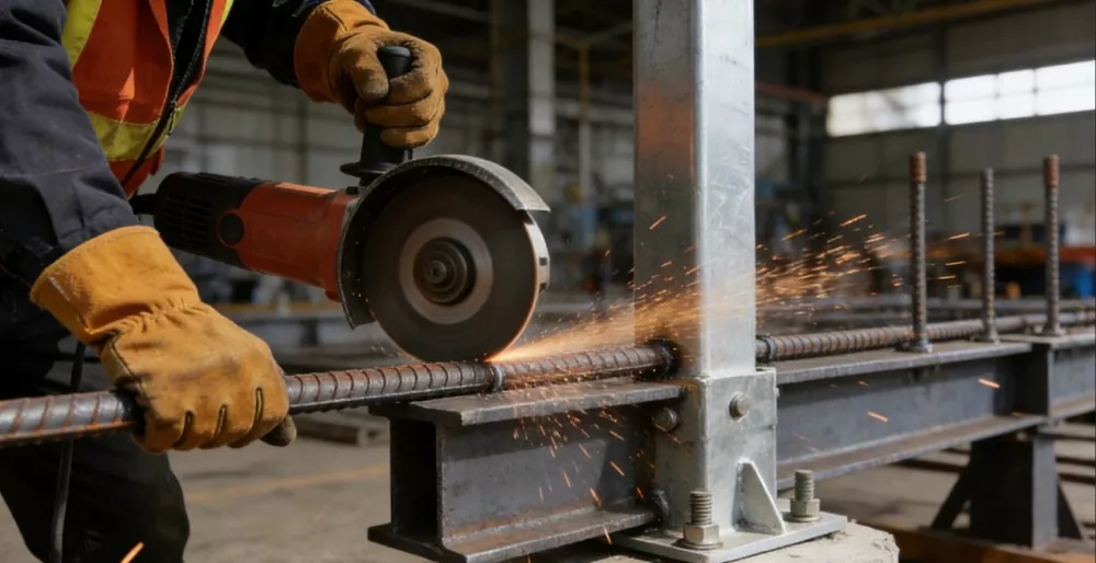 Oinarrizko aplikazioa: habeak, zutabeak, zoru-lauzak eta ekipoen zimenduak sendotzeko erabiltzen da fabrika-eraikinetan, diseinu-planen arabera zehaztasunez moztuz, eskala handiko eraikuntzara egokituz eta sinergikoki fabrika-eraikinaren egitura-osotasun orokorra hobetzeko osagai txertatuekin. Kasu tipikoa: fabrika elektroniko baten eraikuntza-proiektua (HP Jiangsu probintzian, 80 mm-ko luzera pertsonalizatua). 600 mm) eta HRB400 altzairu nerbiodun barrak (diametroa 14 mm, luzera 3500 mm) mozteko piezak, hurrenez hurren, uztaia sendotzeko eta habe eta zutabeen indargarri nagusietarako erabiltzen dira. Prozesatzeko eraginkortasuna 550 pieza/orduko iristen da, ≤ 0,5 °-ko desbideratze bertikalarekin ebaketa-ertzarentzat. Aurrez txertatutako osagaiekin egokitze-maila handia du, % 99,8ko soldadura kualifikazio-tasa eta 320 tonako erabilera. Fabrikako ekipoen karga astunak jasateko baldintzak betetzen ditu eta hormigoizko egituren diseinuaren zehaztapenak betetzen ditu.