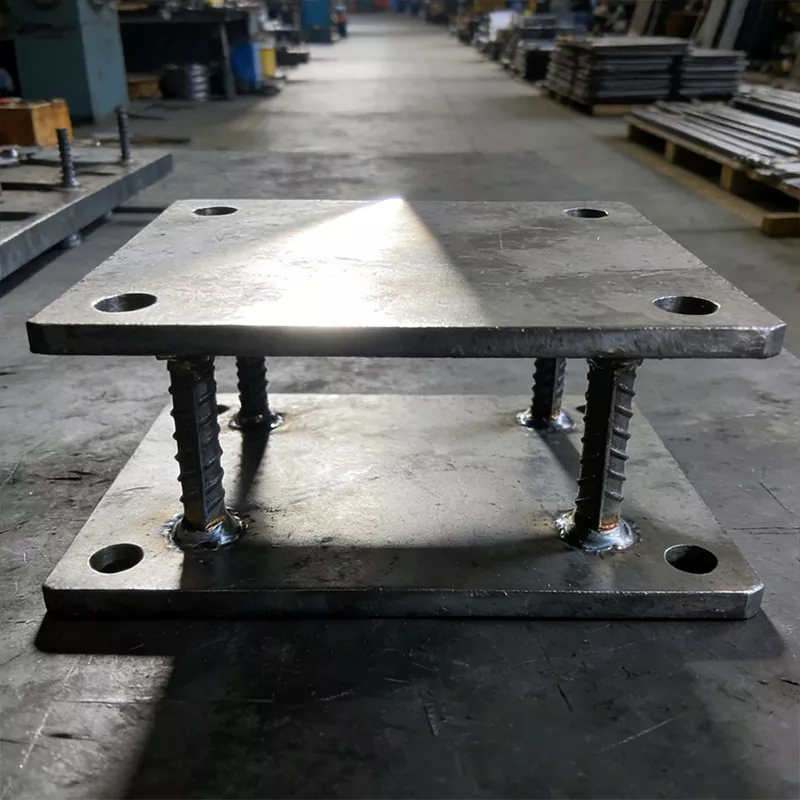 Txertatutako aingura-plakek, hormigoizko egituretan aurrez txertatutako gako-nukleoko konektore gisa, Q235B eta Q345B erresistentzia handiko altzairuzko plakak erabiltzen dituzte oinarri solido gisa. CNC ebaketa zorrotza, zulaketa zehatza eta korrosioaren aurkako tratamendu integrala jasaten dituzte, altzairu hariztatuzko aingura-barrekin soldadura ezin hobea ahalbidetuz, aingura oso egonkor eta fidagarria osatzeko. Kanpoko osagaien kargak modu eraginkorrean jasan ditzakete, hala nola PV instalazio-sistemen, altzairuzko egiturak eta ekipamendu astunak, indar transmisio uniformea eta konexio egonkorra lortuz, eta horrela eraikinen egituren segurtasuna bermatzen dute.