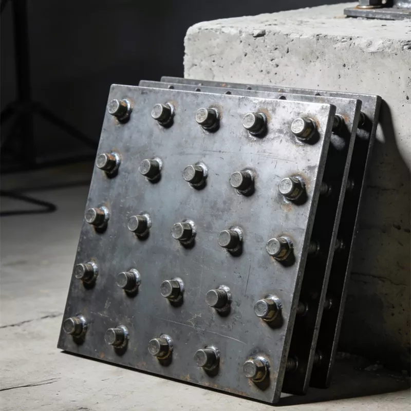 Altzairu txertatutako plaka honek zehaztasun handiko, sendotasun handiko eta moldagarritasun handiko salmenta puntuak ditu. Tamainaren tolerantzia ± 0,5 mm-ko barnean kontrolatzen da, eta torloju-zuloaren posizioaren zehaztasuna ≤±0,2 mm-koa da. Gortina-horma-euskarriekin eta beste osagai batzuekin zehaztasunez konektatu daiteke doitasun-muntaia-baldintza ezberdinak betetzeko. Q235B, 304/316 altzairu herdoilgaitza eta kalitate handiko beste material batzuk aukeratzen dira. Tolesteko indarra ≥ 345MPa da. Gainazala bero galvanizatua da, fluorokarbonoa ihinztatzea eta korrosioaren aurkako beste tratamendu profesional batzuk. Gatz-ihinztatzearen erresistentzia ≥ 1000 ordukoa da. Barruko eta kanpoko hainbat ingurunetara molda daiteke. Aldi berean, tamaina, zuloen diseinua eta gainazaleko tratamendu prozesua pertsonaliza daitezke proiektuaren benetako beharren arabera, osagai ezberdinen konexio-eskakizunak eta dekorazio-estiloak betetzeko.