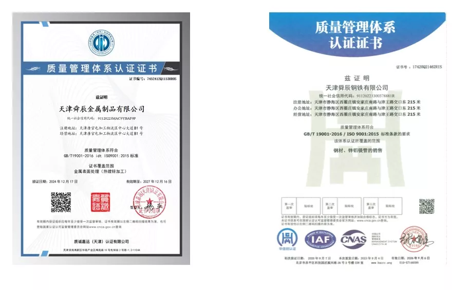 Zergatik aukeratu gaitzazu?Tianjin Shuncheng Industriak urteetako ekoizpen-teknologia metatua dauka, 12 urteko erregistroa mantenduz zero lehenetsi eta urteko zero kalitate-intzidentzia, produktuaren kalitatearen oinarri sendoak ezarriz. Konpainiak zorrozki betetzen ditu ekoizpen estandar nazionalak eta ISO 9000, 3A sistemaren ziurtagiriak eta EBko CE ziurtagiriak ditu. 12 urratseko prozesu batekin eta 3 geruzako ikuskapen-mekanismoarekin, urtero zero kalitate- eta segurtasun-intzidentzia lortzen ditu eta 12 urtez zero eskaera lehenetsiz, bere sendotasuna frogatuz. Amaitutako produktu bakoitza lehortzea, ikuskatzea eta akabera fina jasaten ditu ontziratu eta bidali aurretik, kalitate handiagoa bermatuz. Konpainiak 300 langile baino gehiago enplegatzen ditu eta ERW altzairuzko hodien 236 zehaztapen ekoitzi ditzake, zehaztapen sorta osoa eskainiz eta pertsonalizazioa lagunduz, hainbat beharrizan zehatz asetzeko.