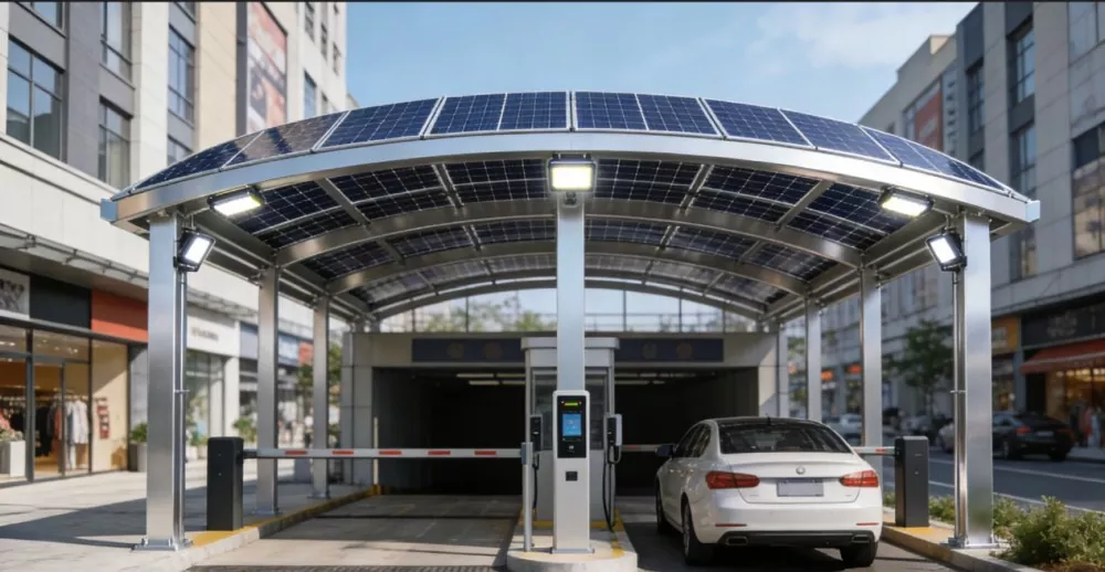 Shunchen Industrial-en arretaz landutako Eguzki Garraioaren Egitura sistema konposatu berritzaile bat da, energia fotovoltaikoa eta ibilgailuen eguzkia eta euriaren babesa integratzen dituena, altzairuzko eta aluminiozko aleaziozko egiturak barne hartzen dituena. Altzairuzko profilez eta hodi karratuz eraikitako marko sendo bat erabiltzen du, modulu fotovoltaikoko euskarriak eta eraginkortasun handiko panel fotovoltaikoak goialdean trebeki integratuz, oinarria zutabe egonkorrak, zimenduak eta aparkaleku muga zehatzak dituen bitartean. Honek eraginkortasun handiko abantaila bikoitzak lortzen ditu "eguzkiaren eta euriaren babesa + sarera konektatutako elektrizitatea sortzea", eta askotariko aparkalekuetan aplikagarria da, hala nola industria-parkeak, lantegiak, merkataritza-konplexuak eta bizitegi-eremuak.