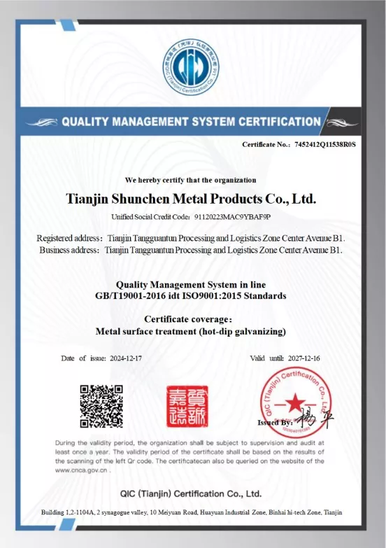 Tianjin Shunchen Industrial Company industria kate integraleko enpresa da. 2014an sortu zen, eta bere egoitza Daqiuzhuang Industrial Gunean dago, Txinako altzairu-gune nagusia. Konpainiaren negozioak hainbat alor hartzen ditu, besteak beste, altzairuzko produktuen prozesaketa sakona eta beroan galvanizatzeko ekoizpena eta prozesatzea. Bere filialek 20.000 tonatik gorako galbanizatutako inbentarioa mantentzen dute urte osoan, biltegiratzea eta banaketa integratzen dituen eskala handiko altzairu galbanizatuko supermerkatu bat ezarriz. Forma bereziko barra oktogonalak hautatuz, Shunchen Industrialek kalitate handiko produktuak eta zerbitzu profesionalak eskain ditzake.